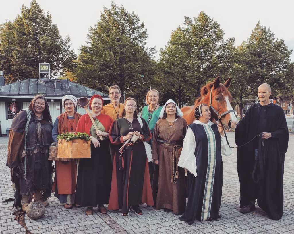 Rottien pyhimyksen elävöitystiimi ja yhdistys teatterivierailulla syyskuussa 2023.